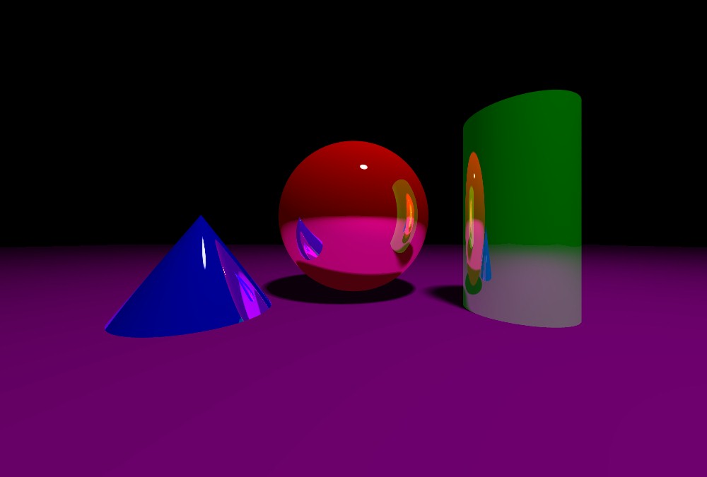 Details can be found in "Ray Tracing with Adaptive Supersampling in Object Space" from Graphics Interface '93 and Adaptive Supersampling in Object Space Using Pyramidal Rays" from the March 1998 Computer Graphics Forum. A short clip from an animation rendered using Adaptive Cone Tracing is also available as an mpg (830K).