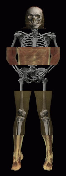 Figure 2: A mosaic of images created from the Visible Male dataset emphasizing different tissue types. |