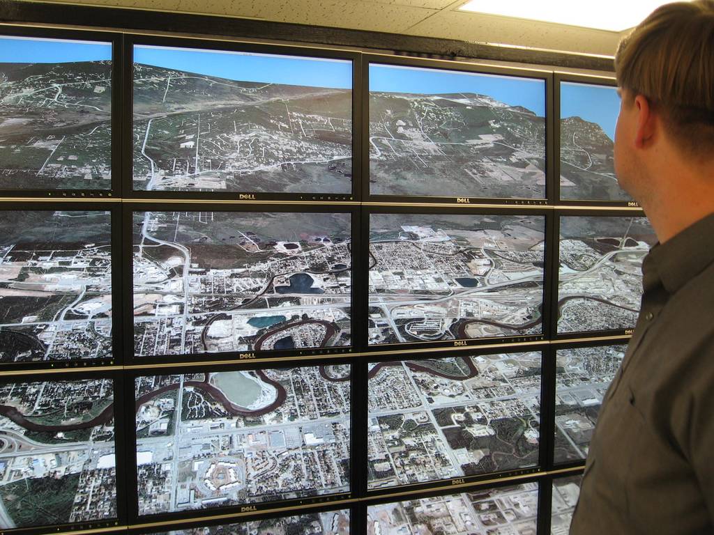 Students used the powerwall during the February 2007 MCM to view state-scale census data and develop a fully automated congressional redistricting algorithm.