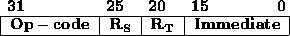 In addition to the op-code field, this format contains two 5 bit register fields and a 16 bit field for an immediate constant.